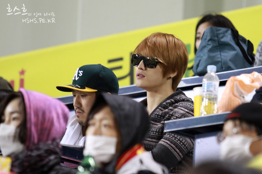 [PICS] 110501 Jaejoong watching a Baseball Game